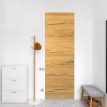 Charakter trifft Maßarbeit: Diese maßgefertigte Innentür mit Zarge in quer furnierter Esche mit Kernriss ist ein echtes Design-Statement für Individualist*innen mit Anspruch. Die natürlich entstandenen Risse wurden kunstvoll schwarz gekittet, wodurch eine ausdrucksstarke Optik mit Tiefe entsteht. Die naturlackierte Oberfläche lässt die Struktur spürbar und das Material lebendig wirken. Das mauerbündige Ideal-Flach-Design sorgt für eine puristische, wandbündige Integration – perfekt für moderne Architektur mit klaren Linien. Jede Tür wird in handwerklicher Präzision gefertigt – einzigartig, stilvoll, kompromisslos.