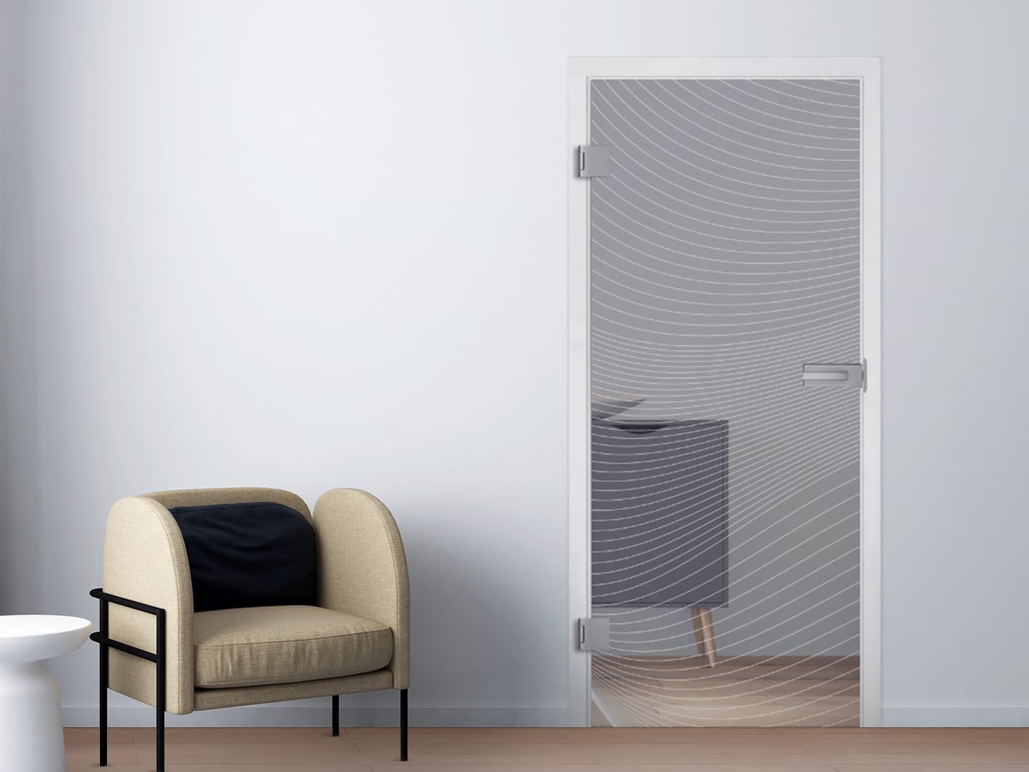 Eleganz in Bewegung – stilvoll satiniert mit feinem Schwung: Die Ganzglastür mit Zarge im Modell Murano aus Floatglas verbindet klare Transparenz mit einem dekorativen, weich geschwungenen Satinmuster. Das dynamische Design wirkt wie eine elegante Welle auf der Glasfläche – ein Blickfang, der gleichzeitig Licht durchlässt und visuelle Abgrenzung schafft. Die satinierte Linie verläuft schwungvoll und verleiht der Tür eine moderne, leicht verspielte Note, ohne überladen zu wirken.
