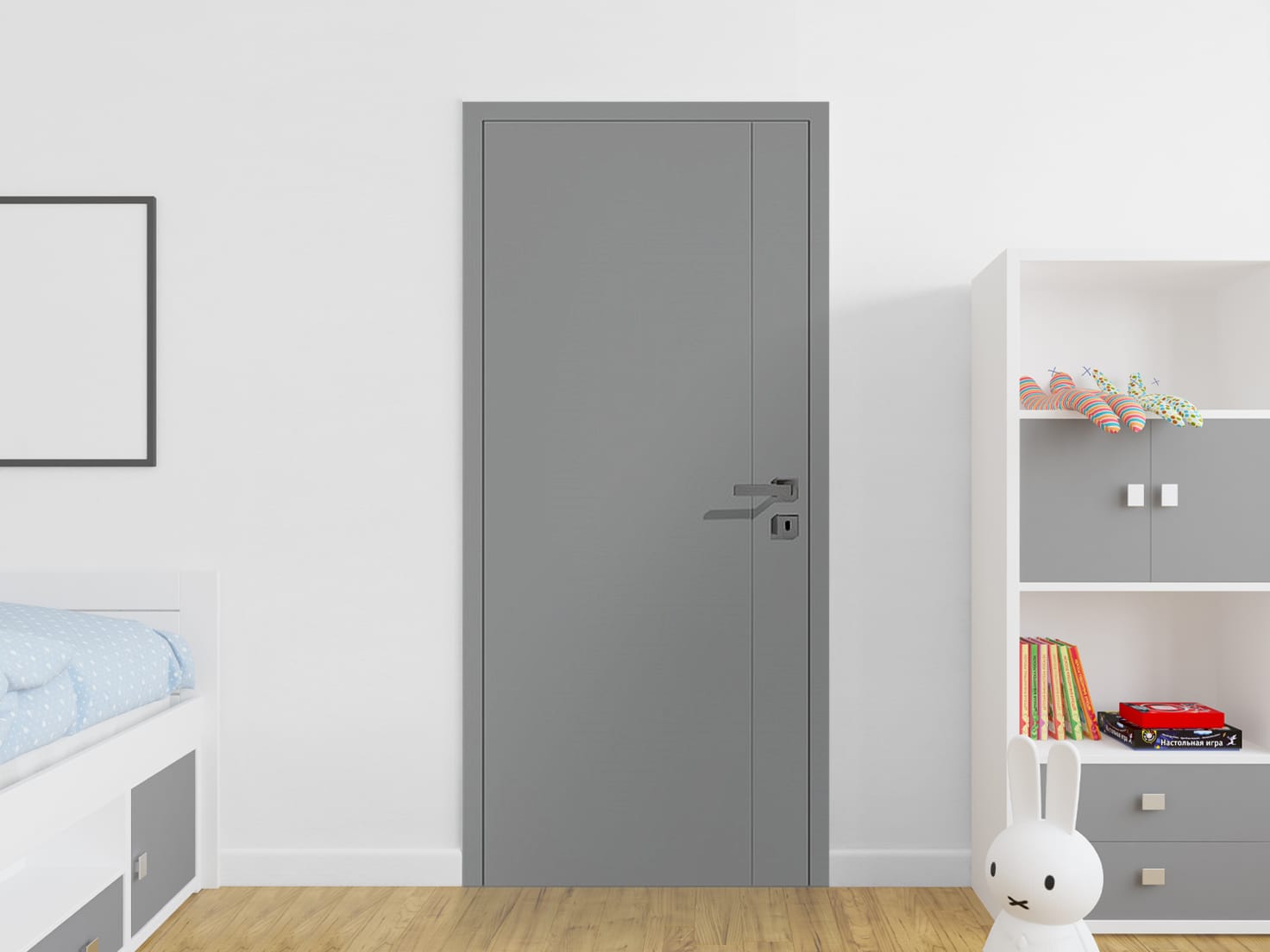 Innentür mit Zarge / Absolut 1 / Reliefdekorfräsung Titangrau lackiert