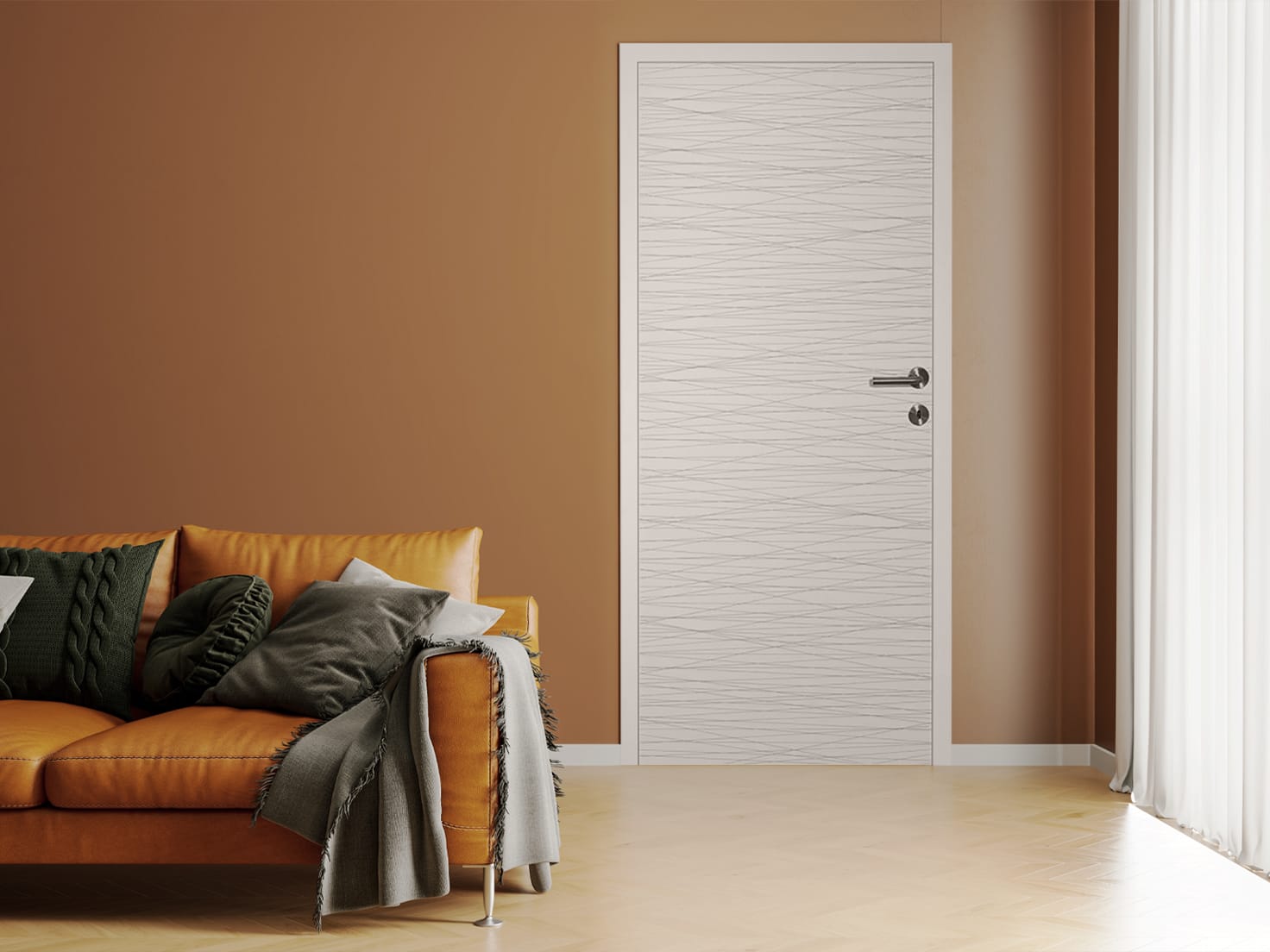 Die seidenmatte Lackierung ist pflegeleicht und widerstandsfähig, was die Tür besonders alltagstauglich macht. Gleichzeitig sorgt die filigrane Struktur für eine angenehme Haptik und einen hochwertigen Eindruck. In Kombination mit der passenden Zarge ergibt sich ein stimmiges Gesamtbild mit architektonischer Klarheit und zurückhaltender Raffinesse.
