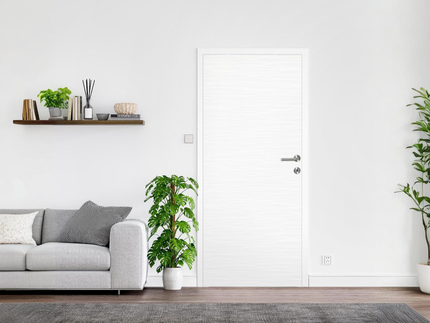 Die präzise eingearbeitete Struktur verleiht der Tür Tiefe und Charakter, ohne sich aufzudrängen. Die glatte Oberfläche ist pflegeleicht und widerstandsfähig – perfekt für anspruchsvolle Wohnräume mit Stil. Die passende Zarge fügt sich harmonisch in das Gesamtbild ein und sorgt für eine durchgängig hochwertige Raumgestaltung.