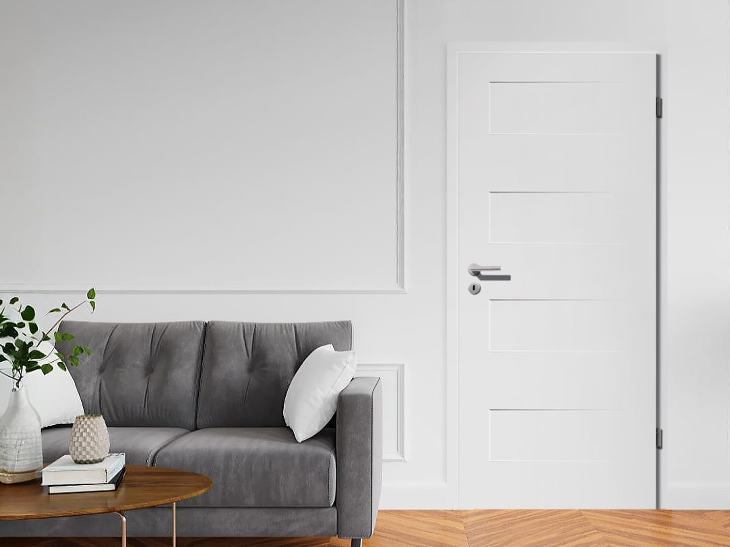 Innentür mit Zarge / Modern 4 / mit auslaufender Fräsung weiß spritzlackiert