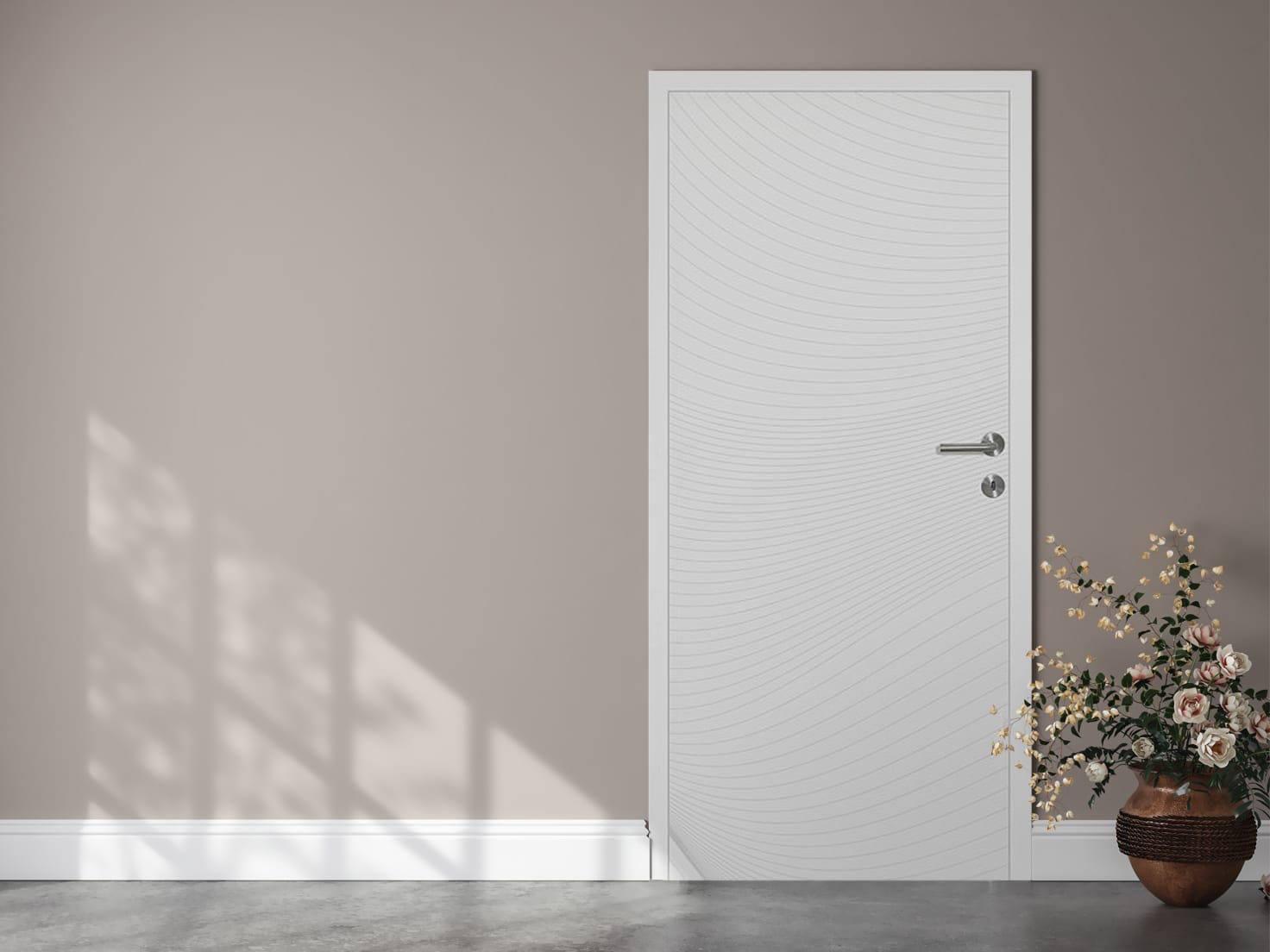 Fließende Eleganz mit grafischem Feingefühl: Die Innentür mit Zarge im Modell Murano kombiniert weiß walzlackierte Oberfläche mit einem feinen grauen Nanoprint, das sich dezent über das Türblatt zieht. Die organische Linienstruktur verleiht der Tür eine sanfte Dynamik und macht sie zu einem stilvollen Blickfang – ruhig im Ausdruck, aber mit subtiler Bewegung. Das Zusammenspiel aus Struktur und Farbe bringt ein besonders harmonisches Raumgefühl, das sich ideal für moderne, ruhige Wohnwelten eignet.