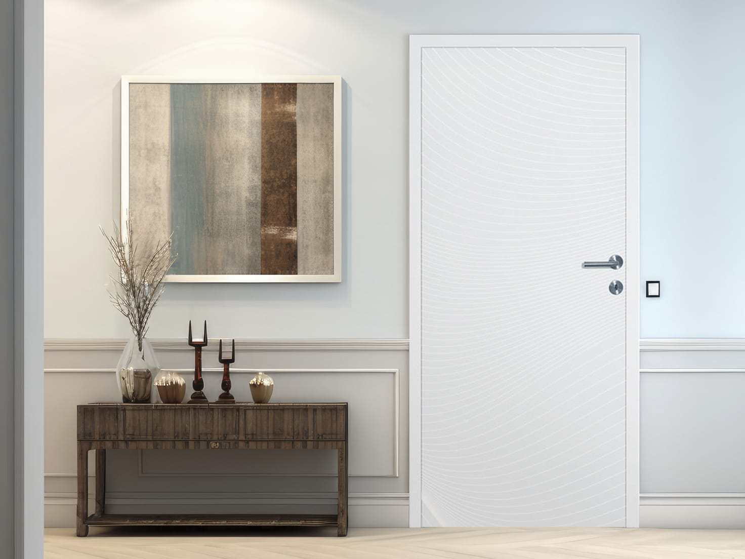 Der edle Hochglanzlack reflektiert das Licht gleichmäßig und lässt die Tür besonders hochwertig wirken. Gleichzeitig ist die Oberfläche pflegeleicht und robust, perfekt für stilvolle Wohn- und Geschäftsräume. Das dynamische Wellenmuster bringt Leichtigkeit in den Raum und unterstreicht die hochwertige Verarbeitung. Mit passender Zarge entsteht ein stimmiges, durchdachtes Gesamtbild mit klarer Linie und gestalterischer Tiefe.