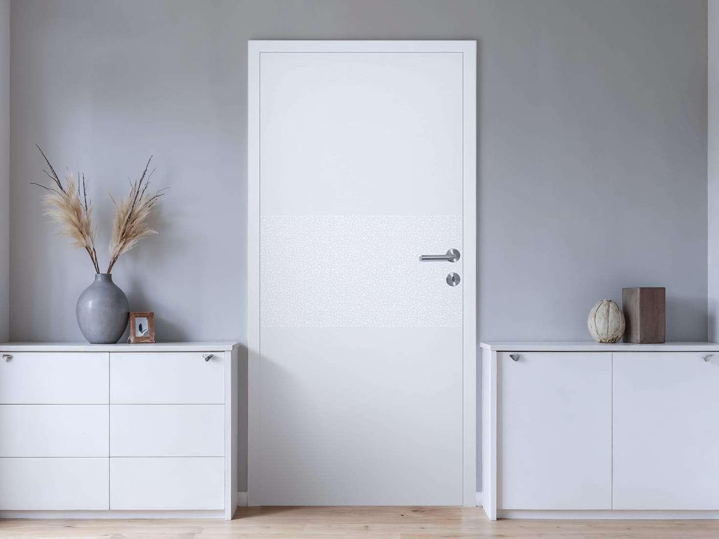 Klare Linie, glanzvolle Wirkung: Die Innentür mit Zarge im Modell Sofia begeistert durch ihre hochglänzenden Nanoprint & weiß walzlackierte Oberfläche und ein mittig platziertes, fein strukturiertes Reliefband. Diese dezente, waagerechte Gestaltung schafft einen eleganten Akzent, der moderne Zurückhaltung mit spürbarer Tiefe kombiniert. Der Glanz der Tür verleiht dem Raum eine besondere Leichtigkeit und reflektiert Licht auf stilvolle Weise.
