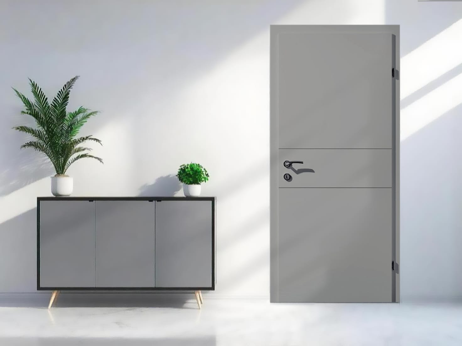 Design mit Tiefgang: Diese Innentür in elegantem Titangrau ist mehr als ein funktionales Bauelement – sie ist ein ausdrucksstarkes Gestaltungselement für moderne Wohnräume. Die fein gearbeitete Reliefdekorfräsung verleiht der Oberfläche spannende Dimension und sorgt für einen stilvollen, fast skulpturalen Look. Die lackierte Oberfläche unterstreicht die edle Anmutung und lässt sich dennoch mühelos reinigen. Gemeinsam mit der perfekt abgestimmten Zarge ergibt sich ein harmonisches Gesamtbild, das durch Qualität, Optik und Haptik überzeugt.