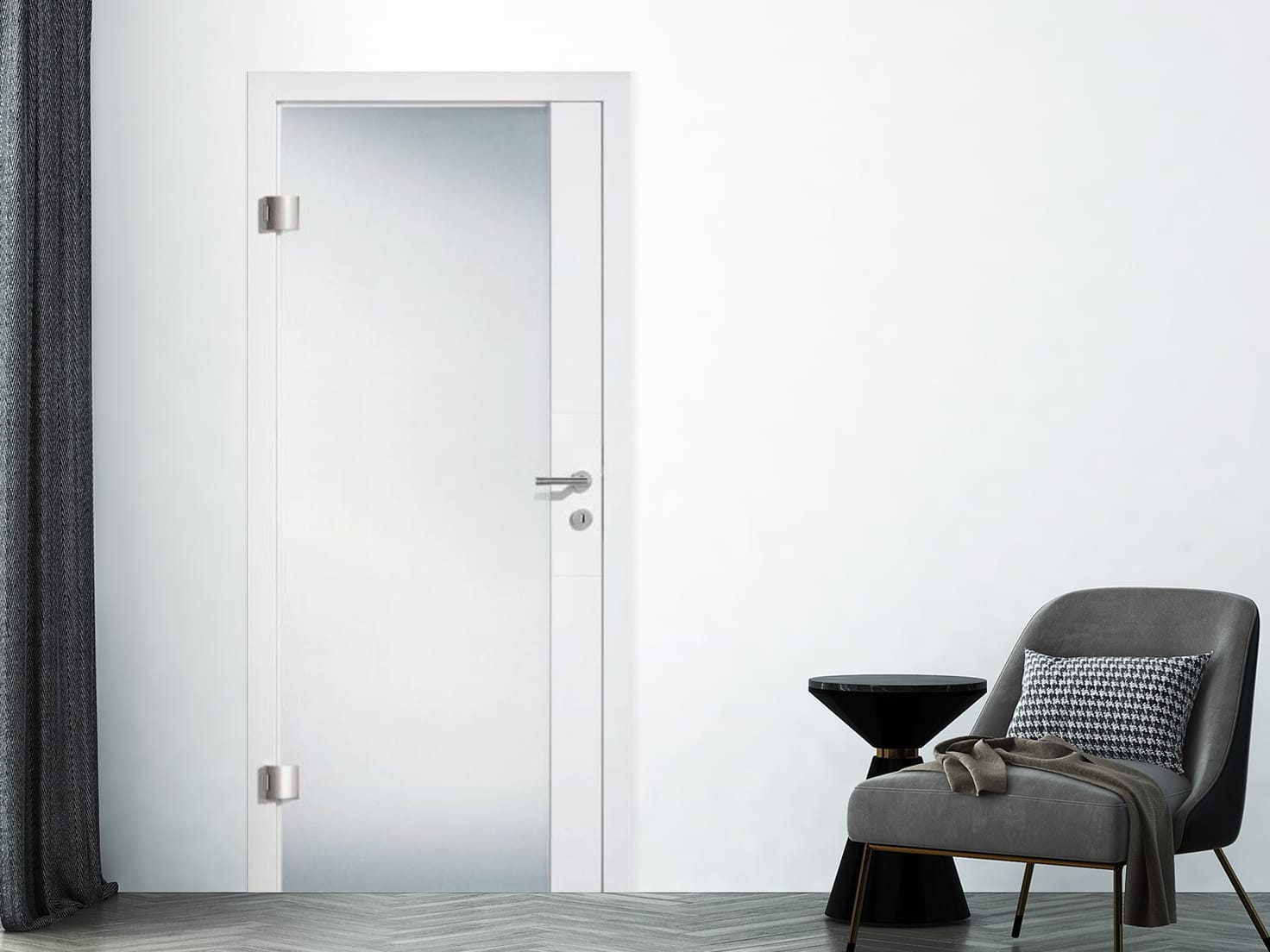 Freche 2 steht für eine moderne Türgestaltung mit Persönlichkeit. Die schmale Glaseinlage ist raffiniert positioniert und bietet eine gelungene Balance aus Offenheit und Privatsphäre. Diese Tür passt ideal zu zeitgemäßen Raumkonzepten, die mit klaren Linien, Lichtführung und minimalistischer Ästhetik arbeiten – sei es in Wohnräumen, Büros oder Durchgangsbereichen mit Designanspruch.